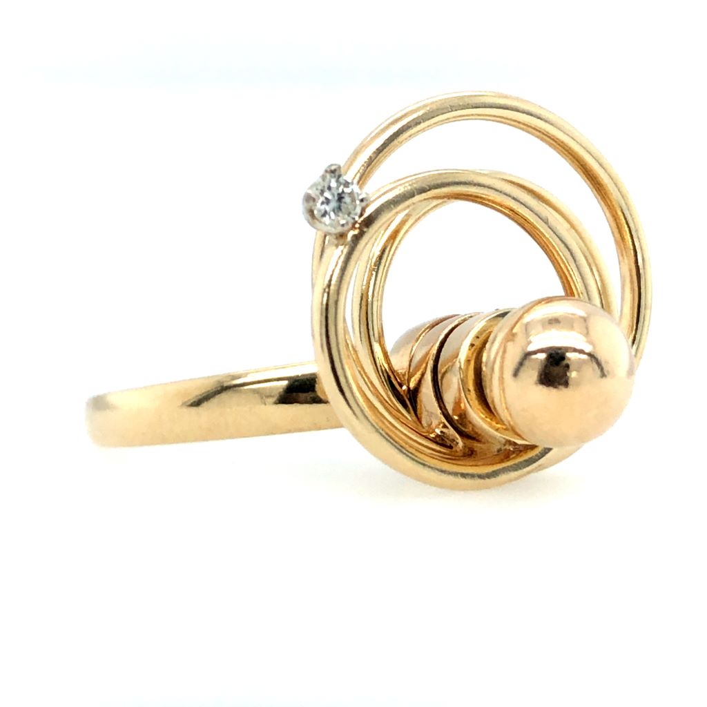 14K Yellow Gold and Diamond Three Loop Spinner Ring