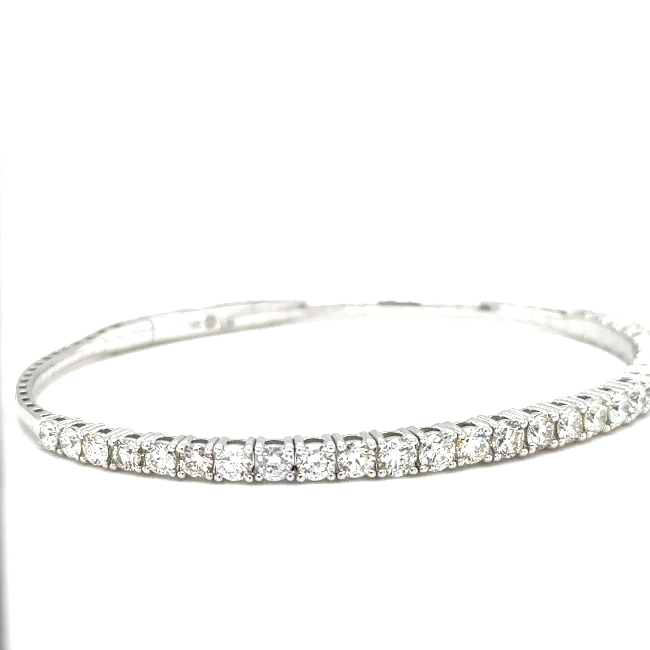 This 14K white gold flexi bangle features 2.95 carats total weight of round brilliant diamonds, set in a continuous row across the top for maximum sparkle and elegance.